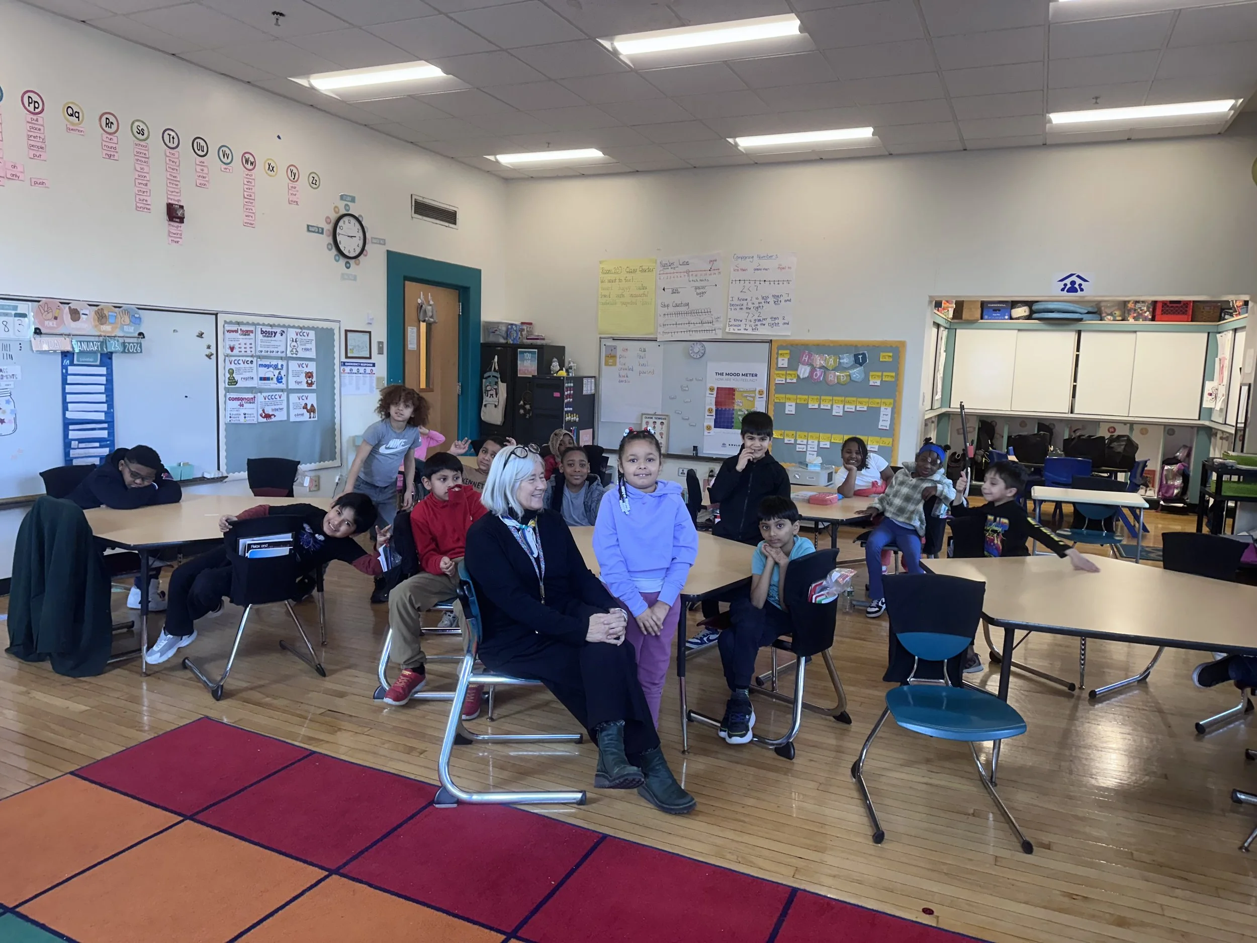 Spending time with the younger students was truly the highlight of the day. Sitting on the floor together, looking at photos of the animals, listening to their ideas, and hearing their stories about their own pets made the experience especially meaningful. Their curiosity and enthusiasm reminded us just how powerful these connections with animals can be.